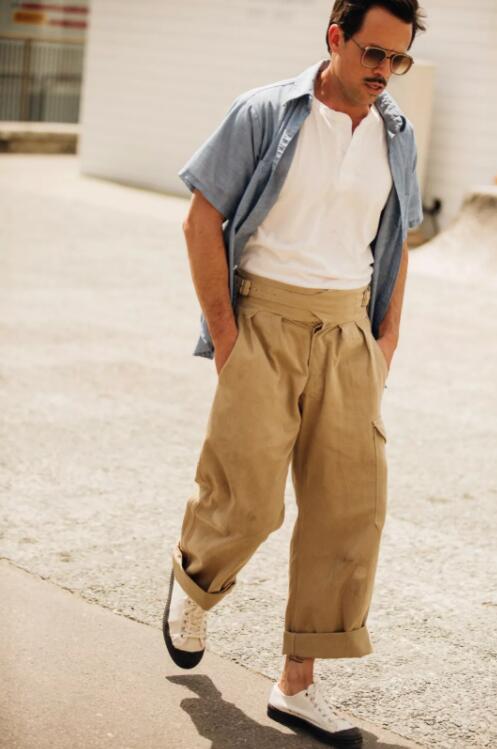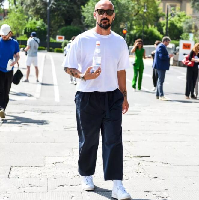 In addition, try to wear long pants First, after all, shorts were a symbol of boys a long time ago, and the loose cuffs can easily bring out your “thin” calves…