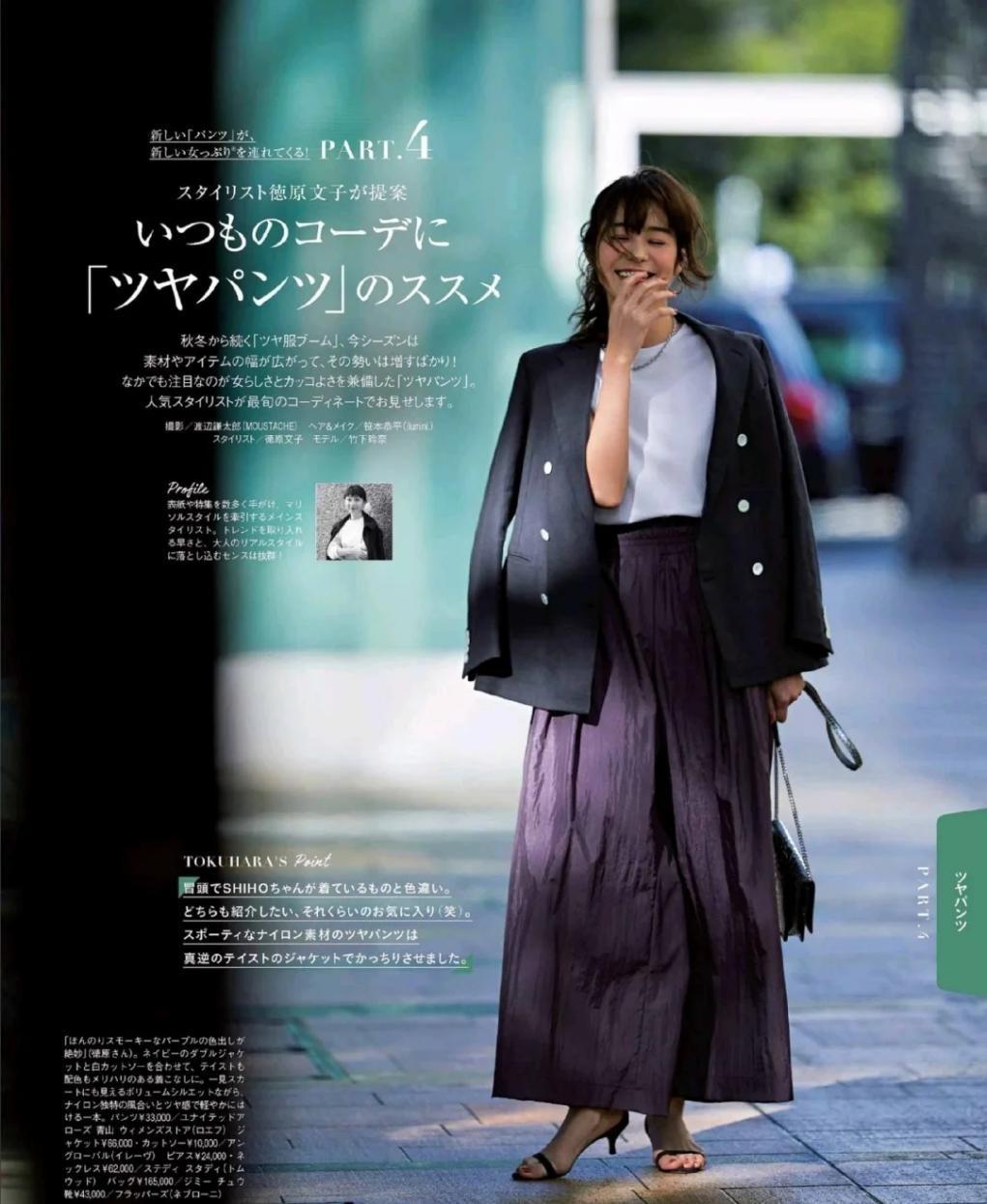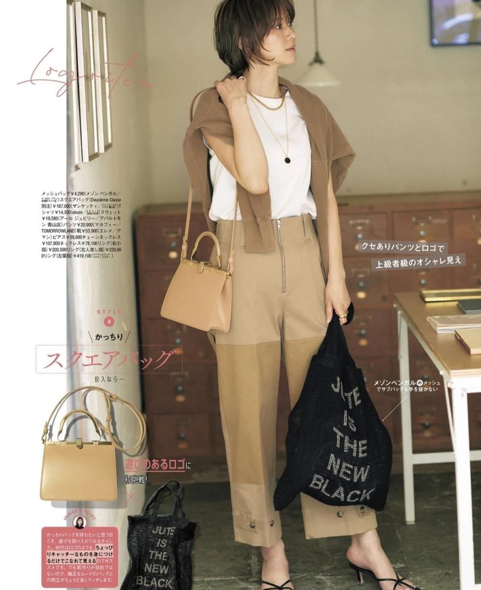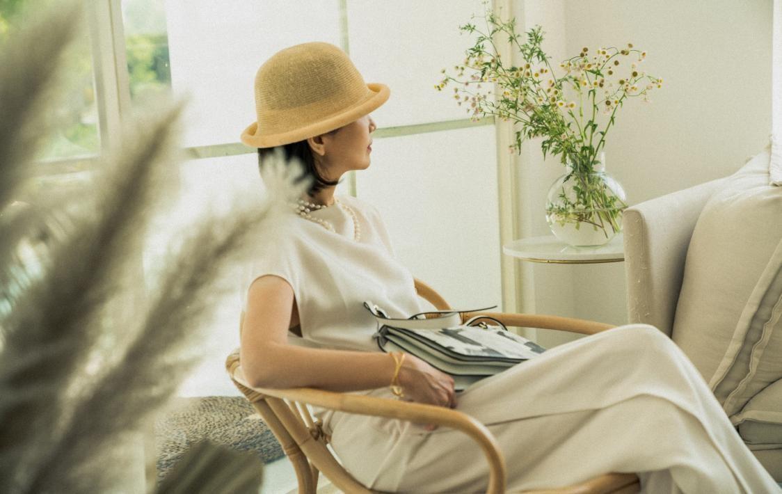 This Look is also good for commuting. You can just carry an upright briefcase and go out; but if you want to look more fashionable, try wearing a straw hat, a rattan bag, and silver accessories that are commonly used on vacation. The pastoral beauty of a literary lady is fully exuded in her soft words.