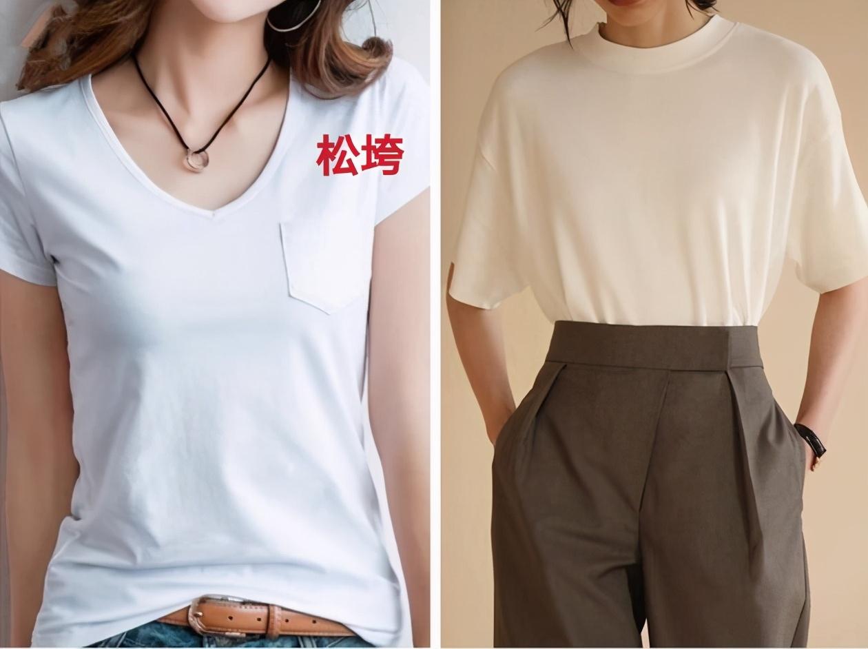 The white T-neckline is a facade, and the small cloth neckline has no overlocking style. The neckline is easily deformed and flattened. It is not wear-resistant; however, the neckline with double-layer routing and ribbing technology will basically not deform, and it will still look like new after being washed several times.