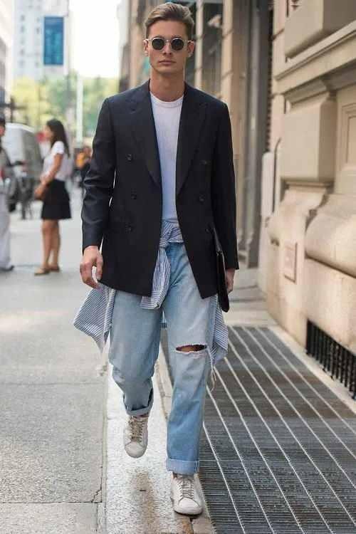 Many people would not easily think of these two items together, but under the trend of the new era, both men and women have adapted to this style and want to pursue a sense of freedom in their daily lives. Breathing and expressing a rigorous attitude at the same time, the two can be perfectly combined. And now the style of suits has become more grand. Men’s choice will make the style more uninhibited and ruffian, and it will be highly readable.