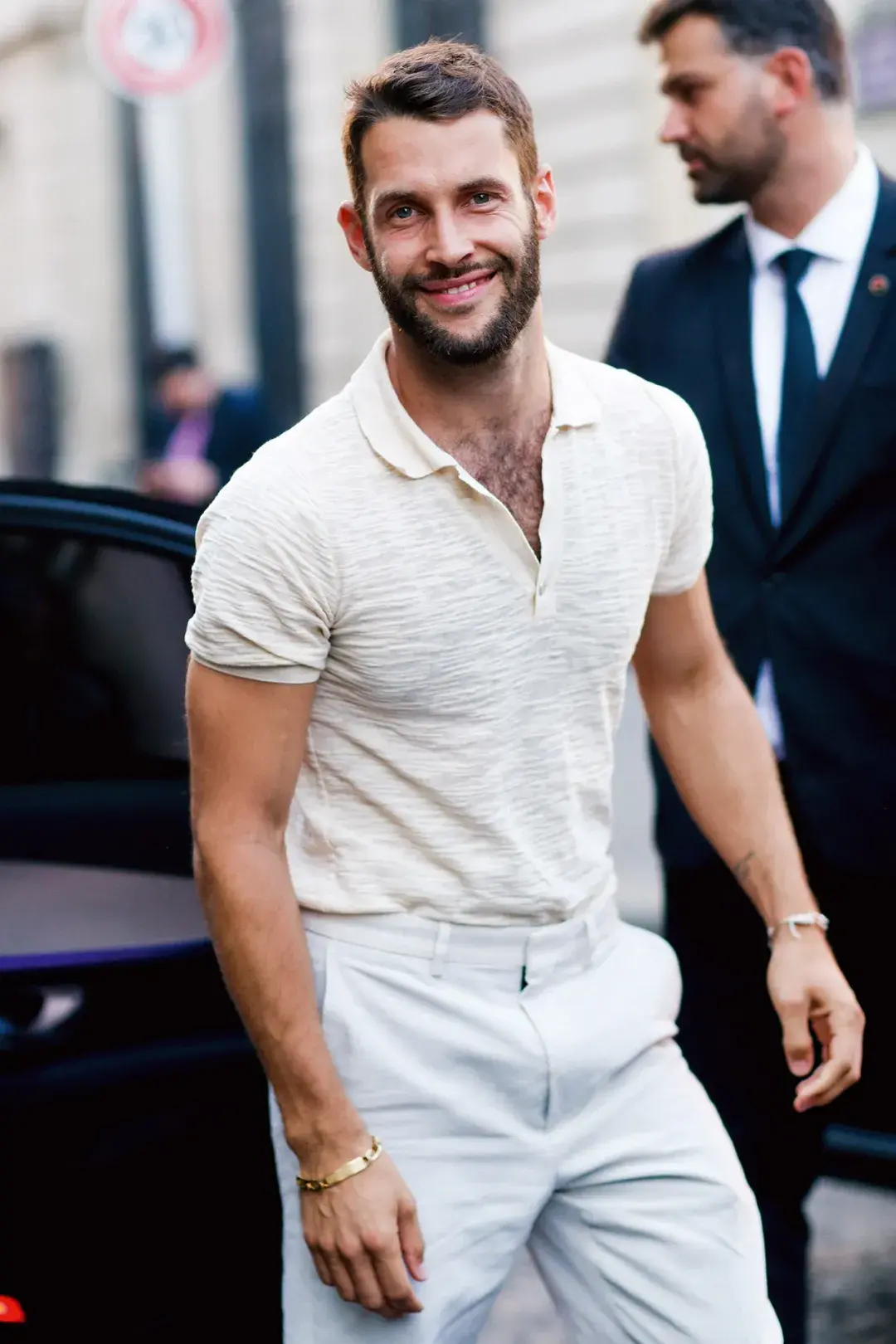 If you want to wear a thinner and softer fabric Polo shirt in summer, please remember to try to choose a style with pure fabric or some texture. Although simple, items with low-key texture can best reflect a man’s taste.