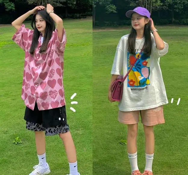 A loose T-shirt is very casual. Pairing the upper body with a pair of shorts is very casual, but for fat girls, it is not affordable to wear it like this. To achieve the effect of modification