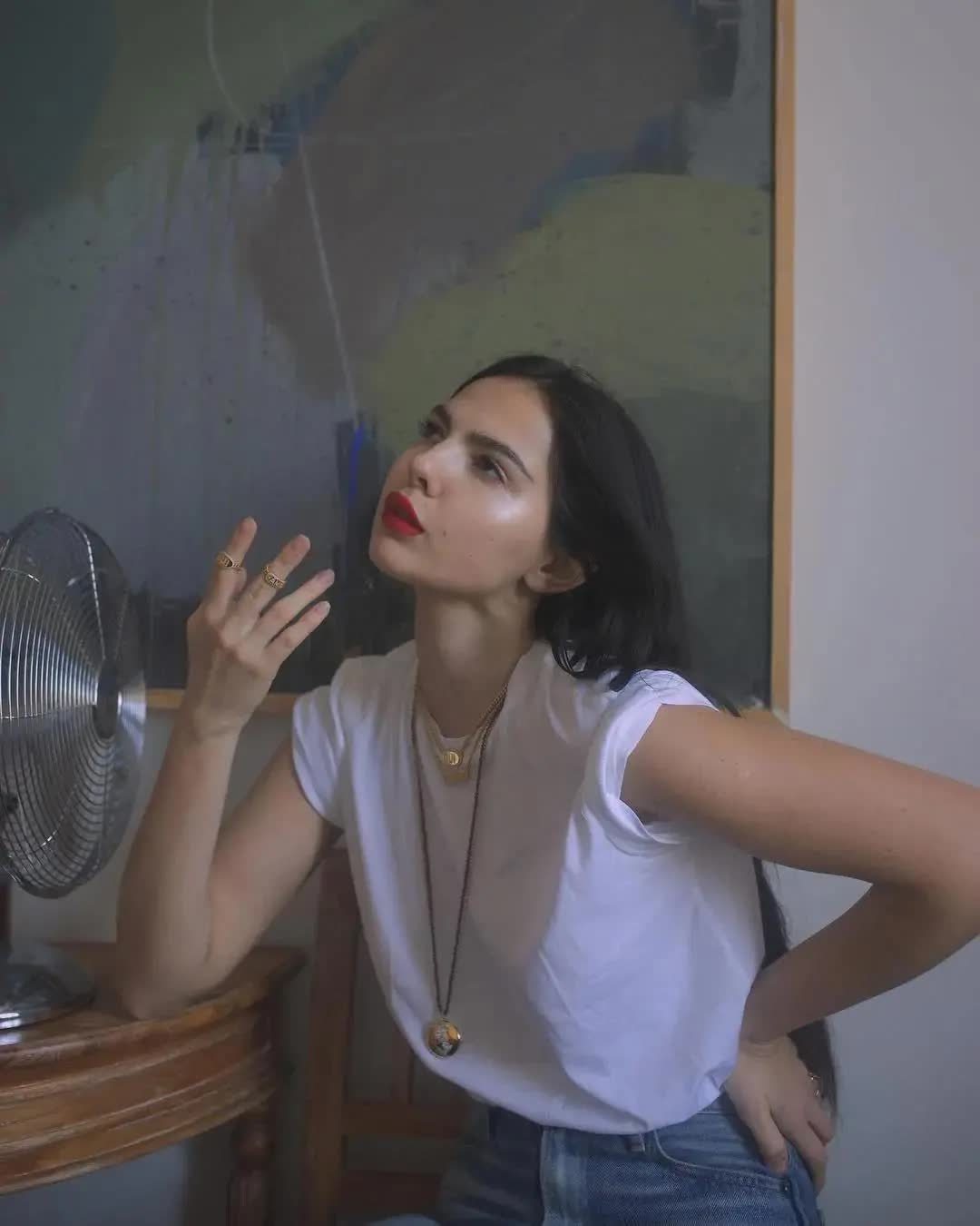 Because of the T-shirt itself It is relatively casual and basic, coupled with the loose tailoring, it is easy to look sloppy and unkempt. A big part of the difference between you and the fashion bloggers wearing T-shirts is the position of the cuffs. A small way to do this is to roll up the sleeves and immediately have a sense of layering. Visually, the cuffs have a bevel effect, so that the cuffs are It will extend upward, and the arms will look thin and long!