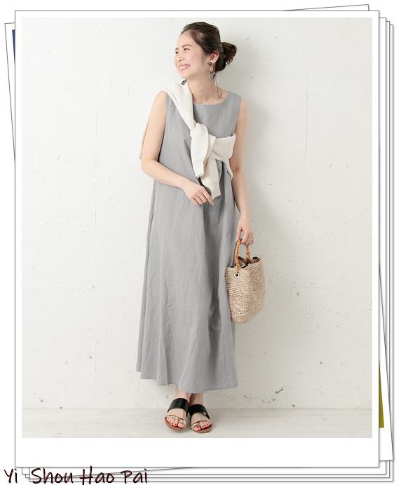 Wearing a gray linen dress with a sleeveless design. You’ll look classier by tying your white top stylishly around your shoulders.
