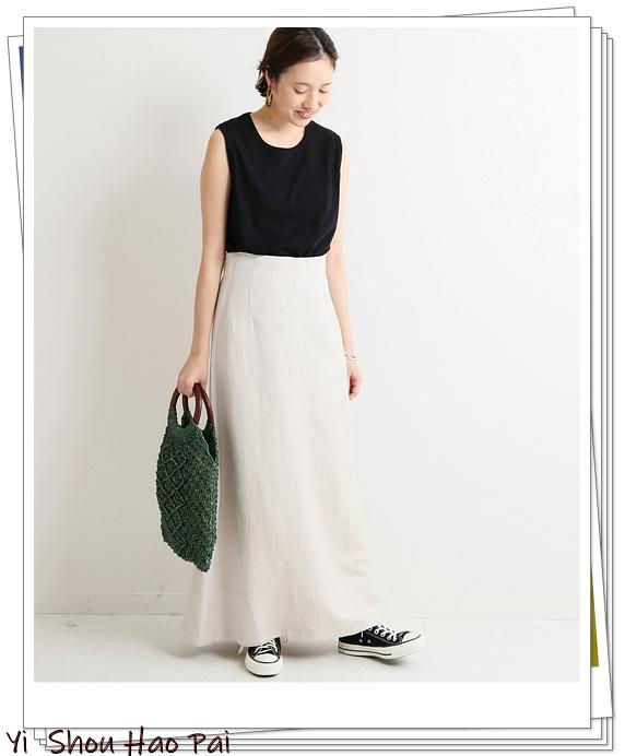 A long linen skirt paired with a simple sleeveless top like this looks mature and cute. The bag and sandals are combined in the same beige color and are combined with a light and sophisticated feel.