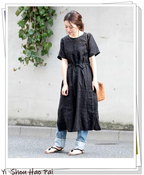 Black dresses that tend to look heavy will not feel heavy if they are made of linen , very suitable for summer! If you layer jeans underneath, you can complete a stylish layering look.