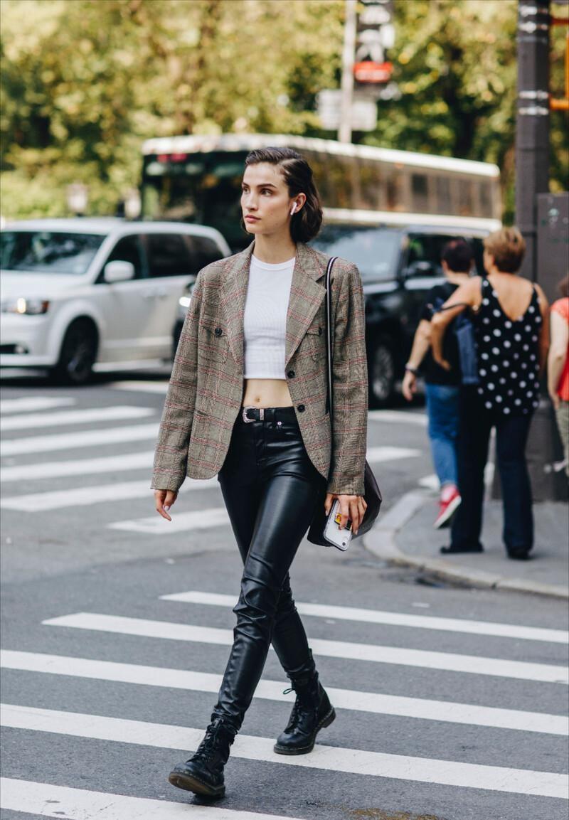 If you want to make the look more retro, you can pair leather pants with a T-shirt in a smaller size. Leather pants are a piece of clothing with a retro feel that also gives people a modern feel.