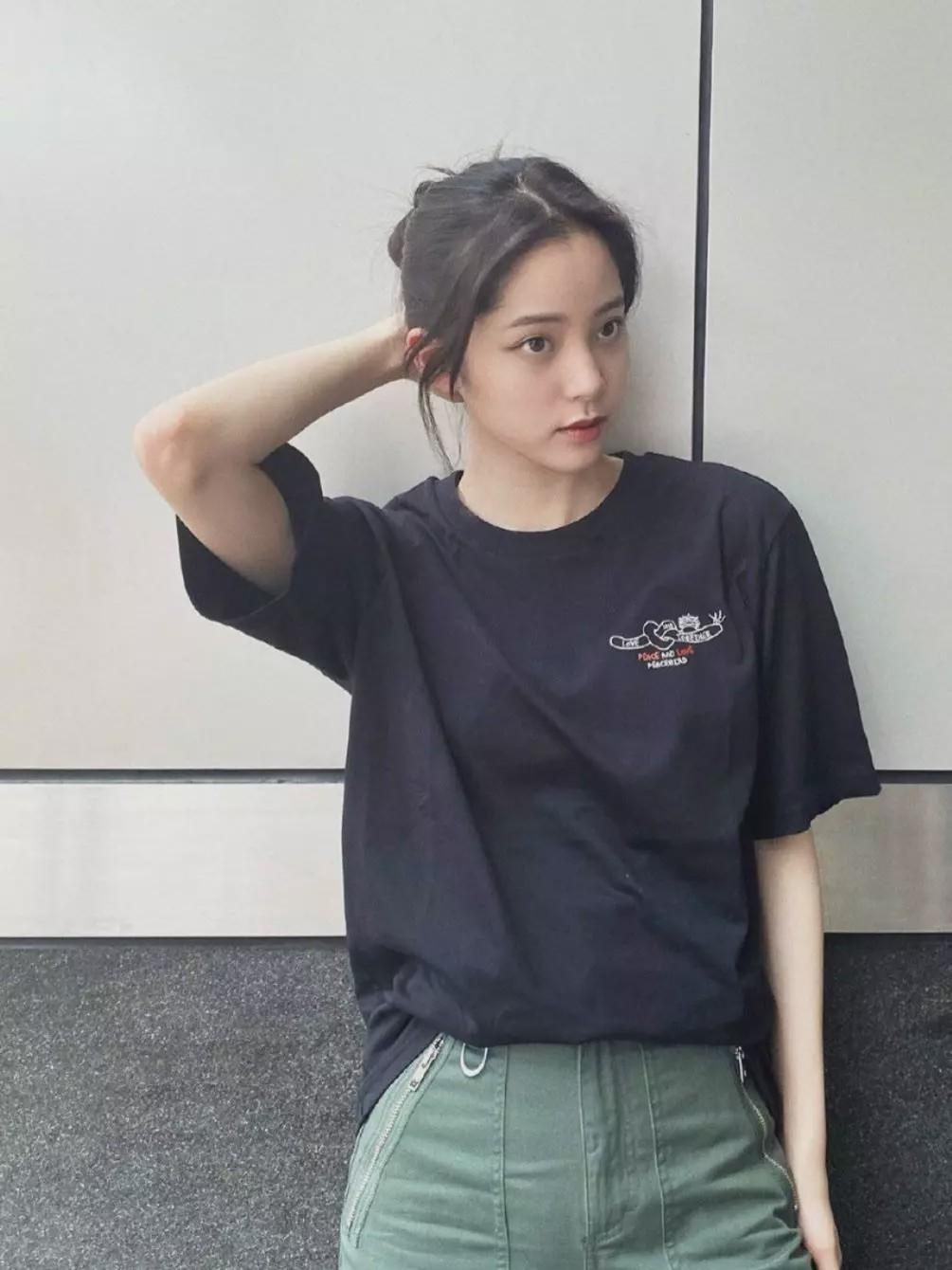 Properly loose clothes can also visually weaken big breasts. The T-shirt Liu Yan wore made the girl instantly forget that she was a big-breasted beauty. But don’t be too generous, otherwise it will only look “pregnant”.