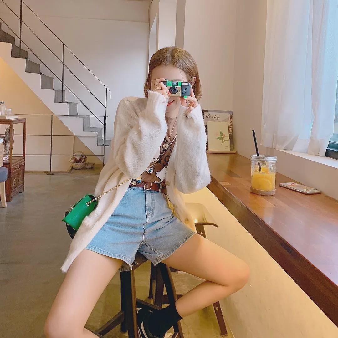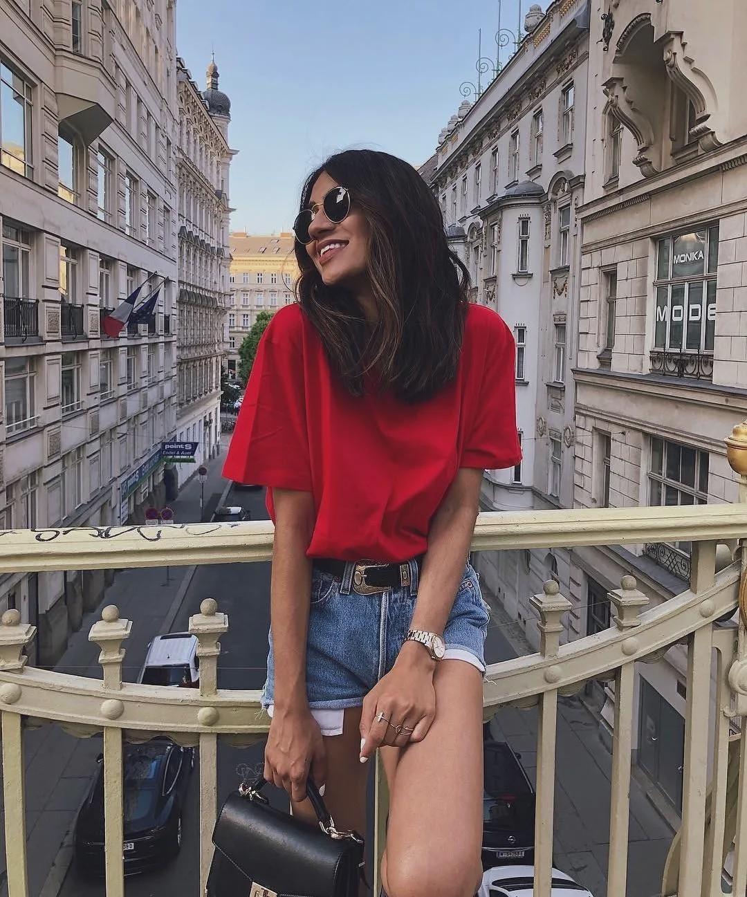 Highlighting the waistline is also one of the effective ways. You can tie a T-shirt in a knot around the waist to reveal your slim waist, and at the same time create an upper body sense of air.
