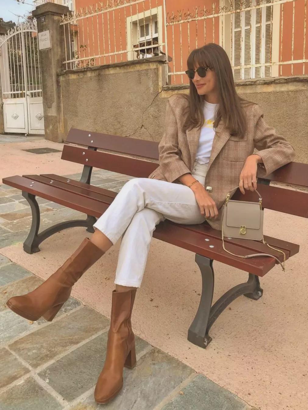 T-shirt + jacket is the most practical combination. It can not only cope with the temperature difference between morning and evening, but also create layers. It feels like killing two birds with one stone. The more stylish outerwear is a suit, leather jacket or gentle knitted cardigan.