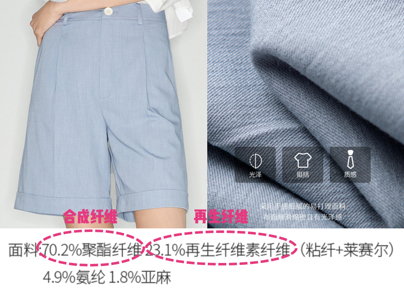 Nowadays, the texture of many new fabrics can be made very good. Like the one below, it looks like the texture of linen fabric. But the ingredients are actually polyester fiber + regenerated fiber, and the flax content is only 1.8%: