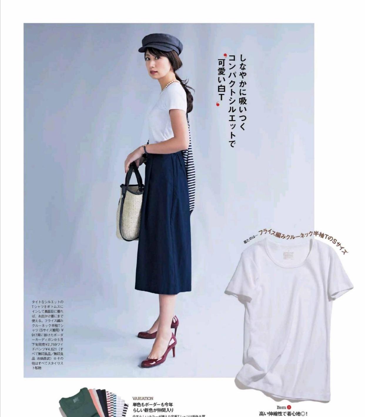 If you don’t know which T-shirt to choose, just choose pure white. You can create a variety of looks, such as the most The refreshing color matching method is to use a pure white T-shirt with a dark blue skirt. The refreshing and age-reducing feeling is immediately reflected. The key is that the color scheme, which is light at the top and dark at the bottom, can also weaken the sense of old-fashionedness and bring out an intellectual and gentle temperament.