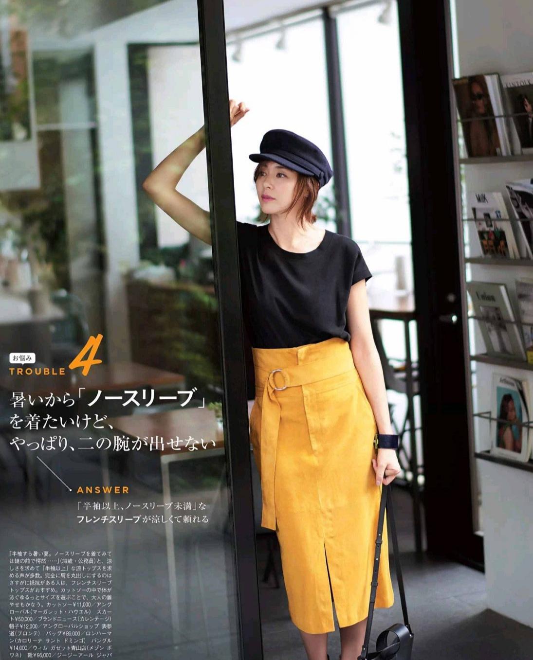 If you have an apple-shaped figure with a fatter upper body, then the top should be paired with a slim black T-shirt. , the visual shrinkage effect makes you look slender. If you are worried that black will be a bit dull and monotonous and not fresh and conspicuous enough, you can pair it with a bright yellow skirt to brighten up the overall tone and create a youthful, energetic and elegant feeling.