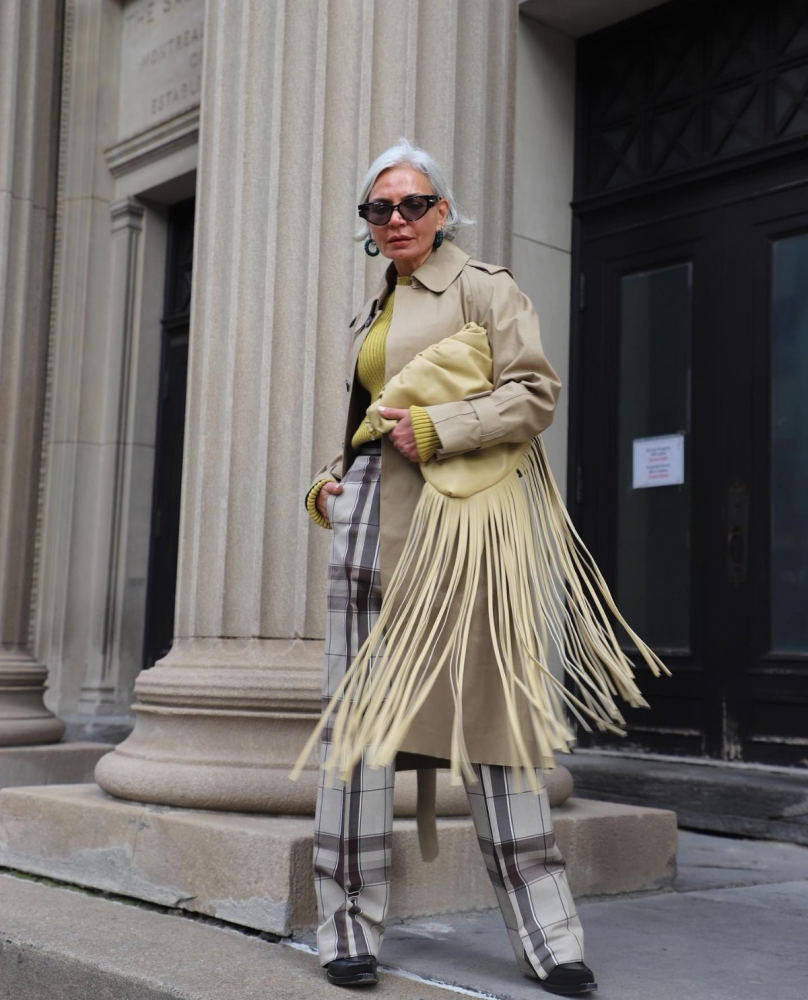 We middle-aged and elderly women are already old after all. If we want to get rid of the ordinary feeling when it comes to dressing, we need to pay more attention to it. It doesn’t have to be too ordinary. You can add some trendy and personalized elements to help you show up as you like. ideal state. For example, layering a khaki windbreaker with a grass green sweater, a pair of plaid pants on the lower body, and a long tassel bag can help you fully demonstrate your sense of foreign fashion.