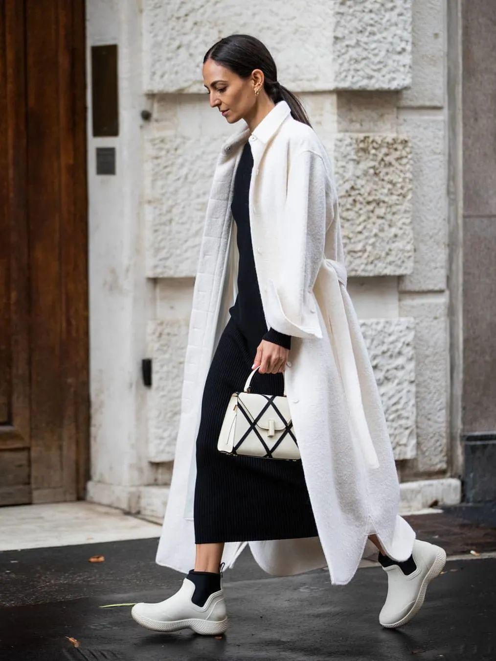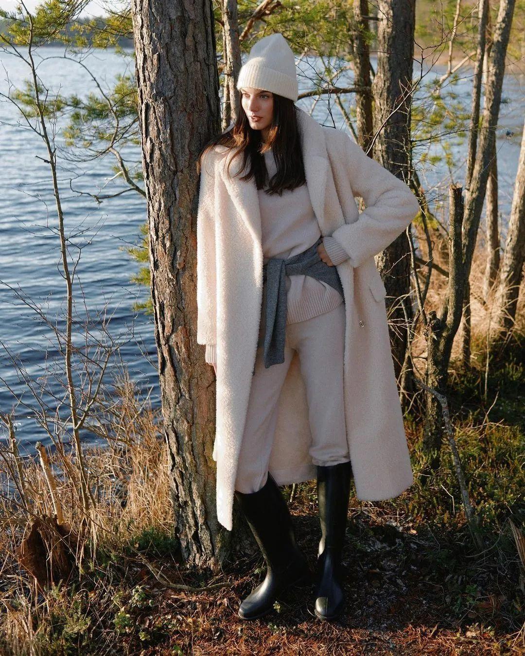 Of course, we In terms of matching, you should also try to be as simple as possible. You just have to pay attention to details to dress well. For example, in the picture above, a basic off-white coat + black inner wear. The color matching is very proportional. It can be embellished with bags and jewelry to make you more stylish. High-end and refined.