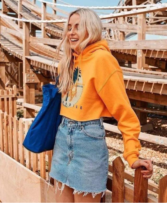 So short sweatshirts are the favorite of many small girls. After all, who doesn’t like to look taller, especially when the lower body is changed into High-waisted trousers or skirts, the “two-pronged approach” can maximize the elongation of the leg proportions and create long legs in minutes. Of course, if girls with other body types want to wear long legs, short sweatshirts can help you.