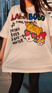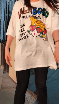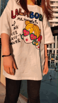 The best way to tie a butterfly knot is to choose a T-shirt with a large pattern on the chest, so that the pattern will be more exposed after tying. Looks great!