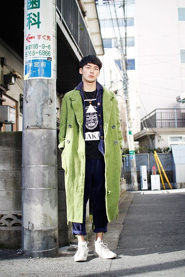 The selected inner top can be tucked into high-waisted pants , this combination of upper and lower garments highlights the waistline, and wearing the coat open will not reduce the overall image. After all,The styling is also very good. This shows that if a man chooses the right item, even simple canvas shoes can look very stylish.