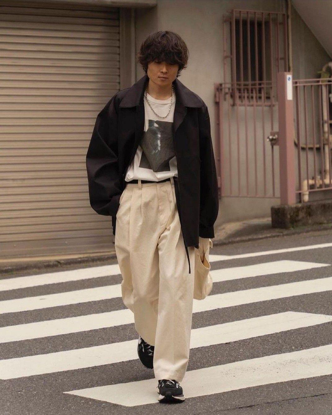 ①T-shirt and loose jacket are clean and comfortable