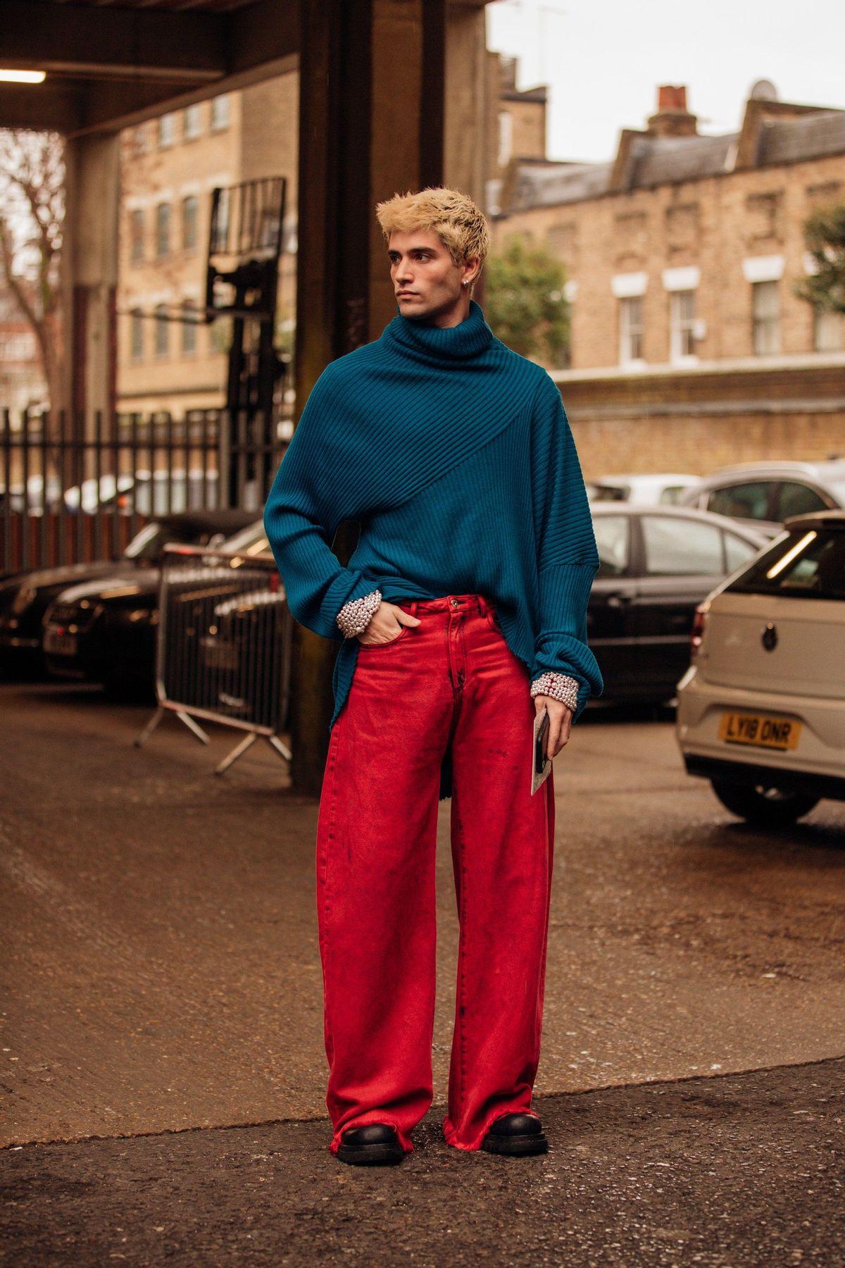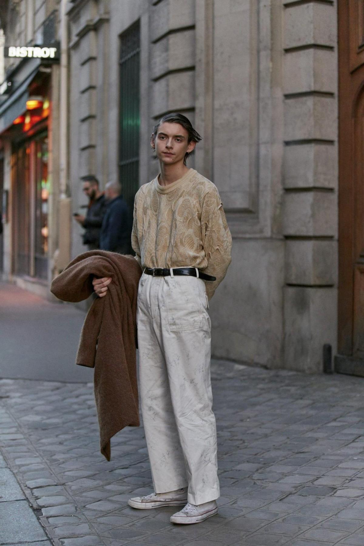 中长款的亮色毛衣用来和淡白色的阔腿西裤搭配,一亮一淡保持了风格的发展,冬季这样的穿随性休闲,整个人精神又讲究,看起来就很潮。