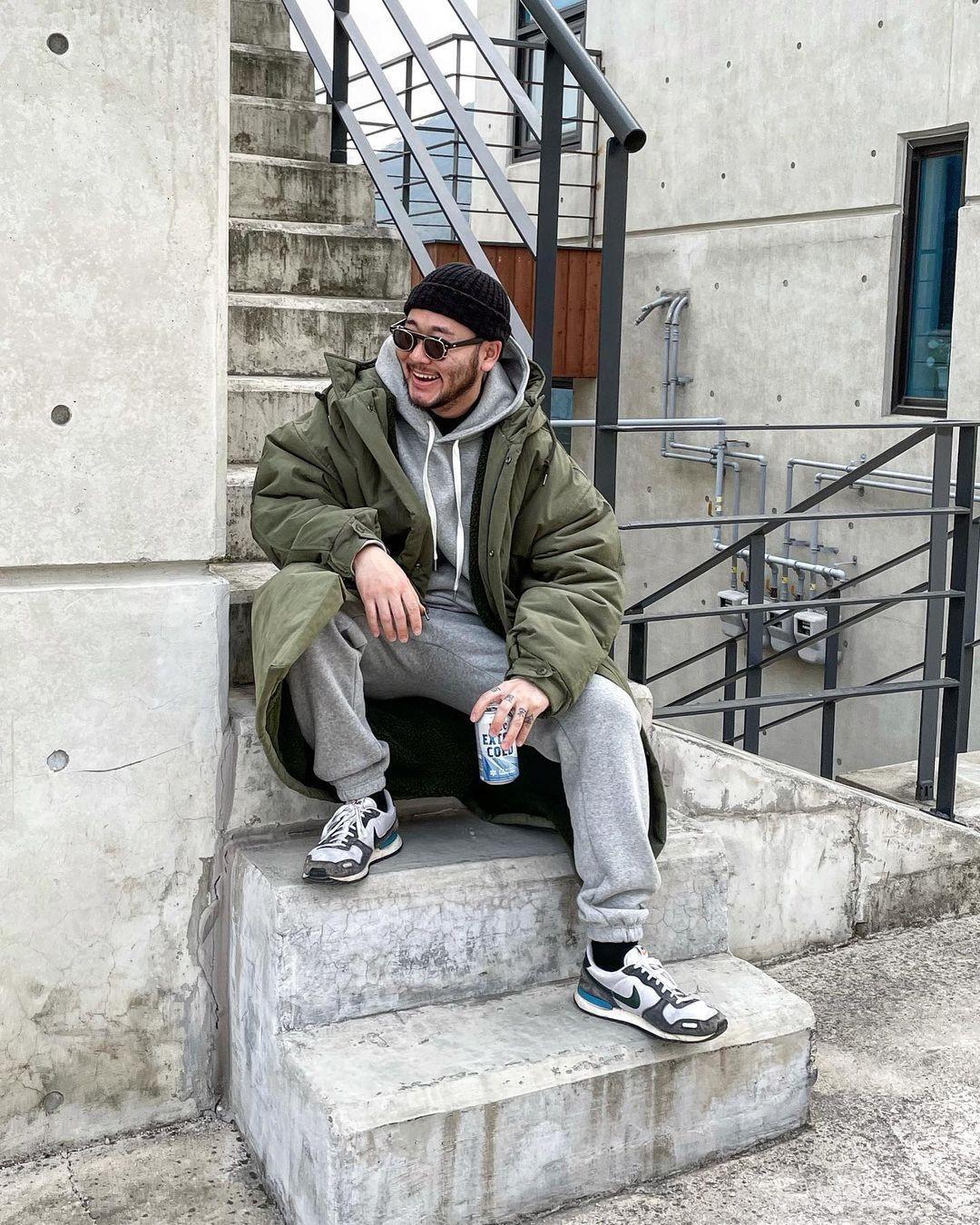 ②Down jacket + sweatpants