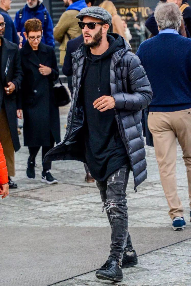 Especially when mixed with a hooded sweatshirt, the shape of the down jacket not only keeps you warm, but also adds layering to the look, making the look no longer monotonous and stereotyped.