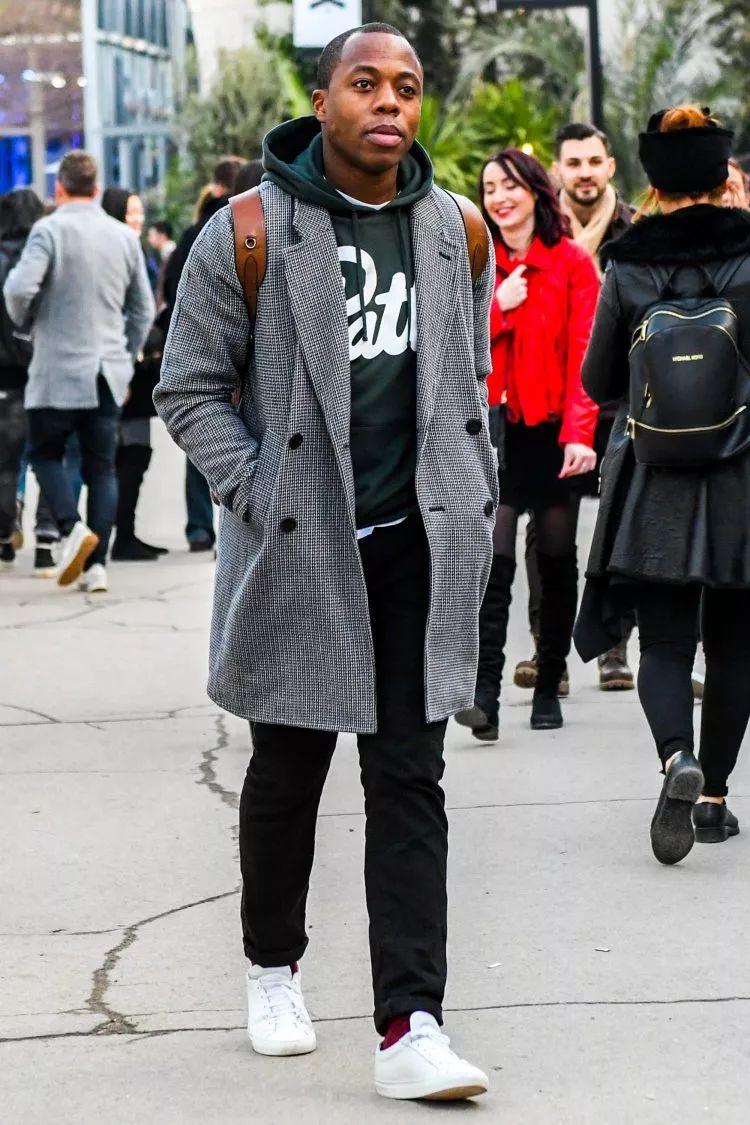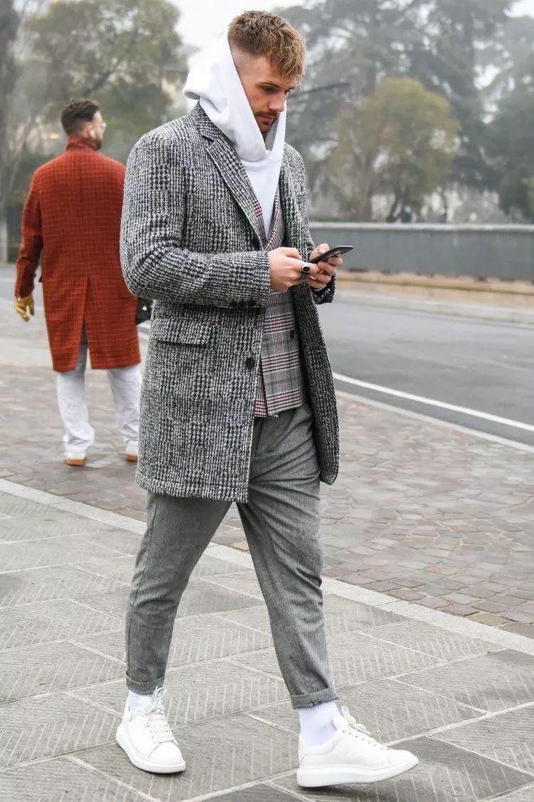 Pairing a gentleman’s coat with a hooded sweatshirt can also create a sense of street fashion. It can also solve the monotony of the inner coat.