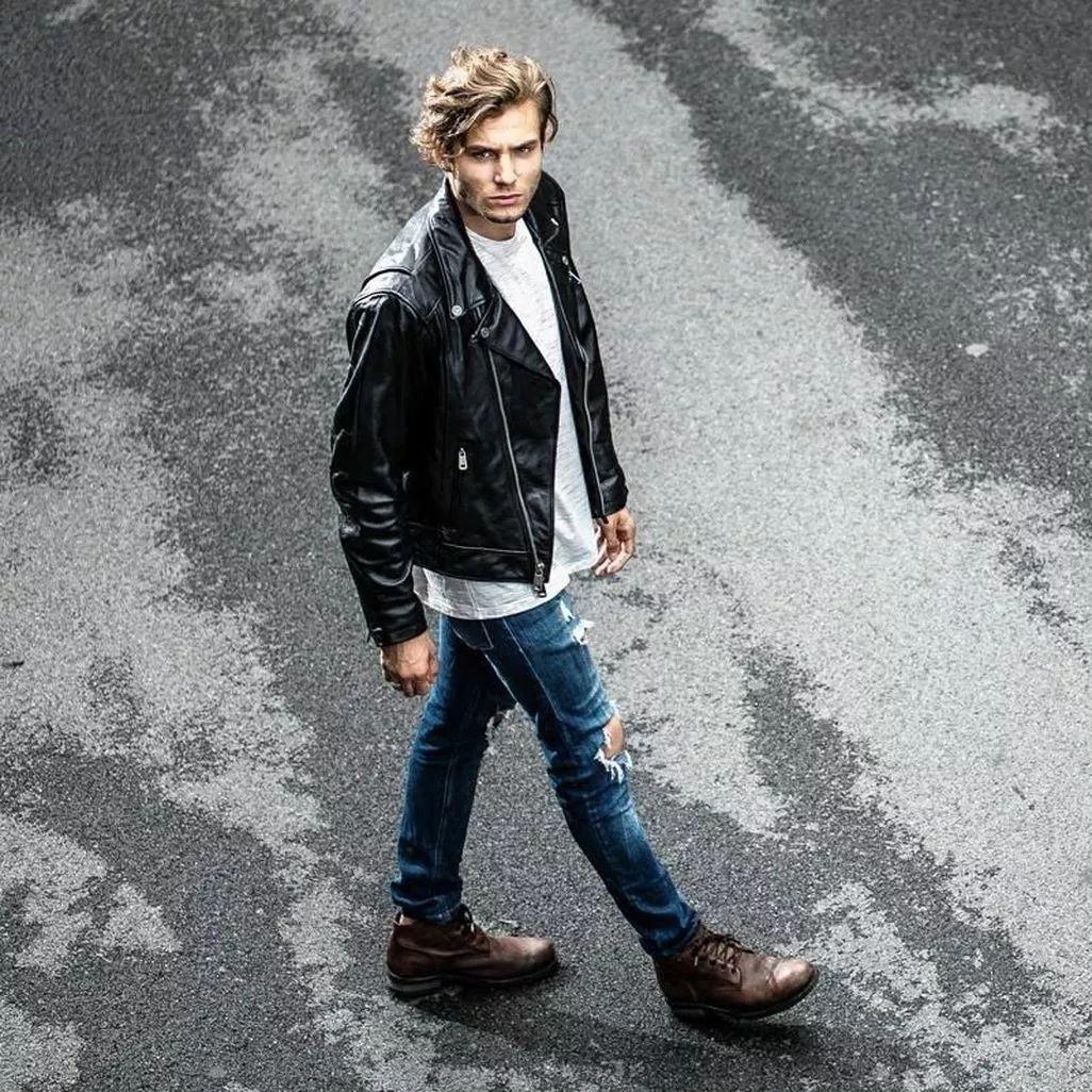 No matter how you wear jeans, you can never go wrong. An ordinary round-neck T-shirt and white shoes, the principle of Less is more tells us that this is the best match for jeans. Tough guy representatives such as Marlon Brando are very fond of jeans, adding a layer of masculine wildness to them.