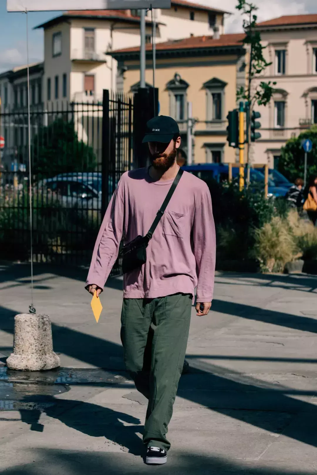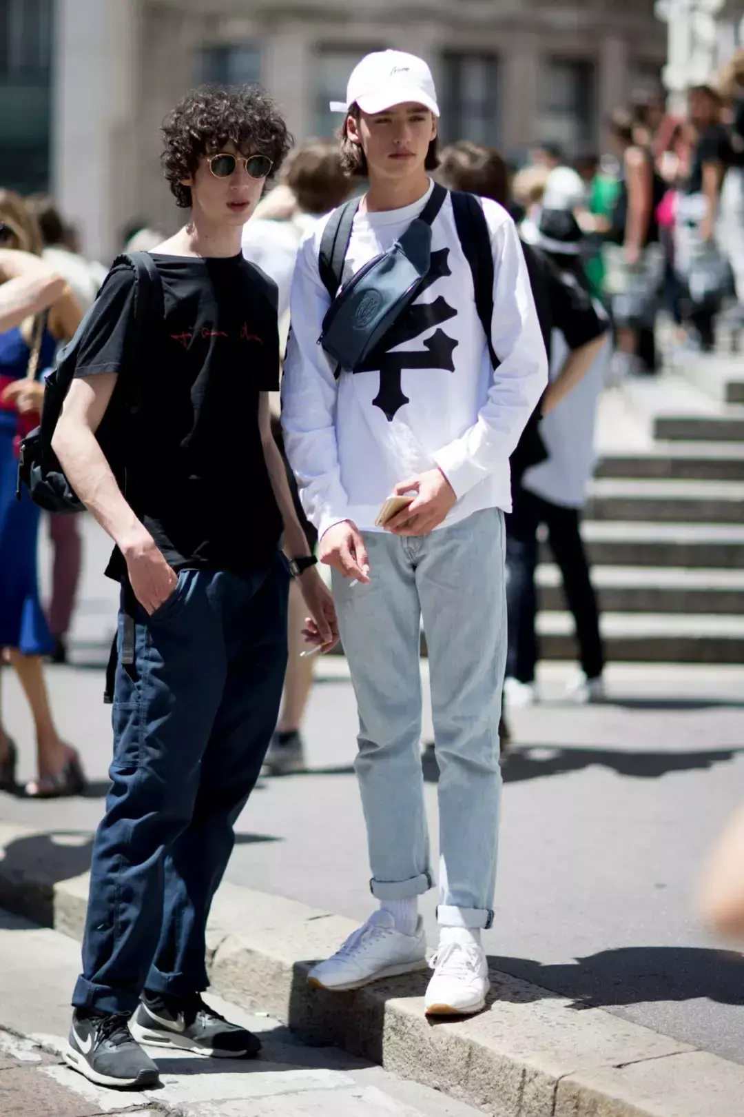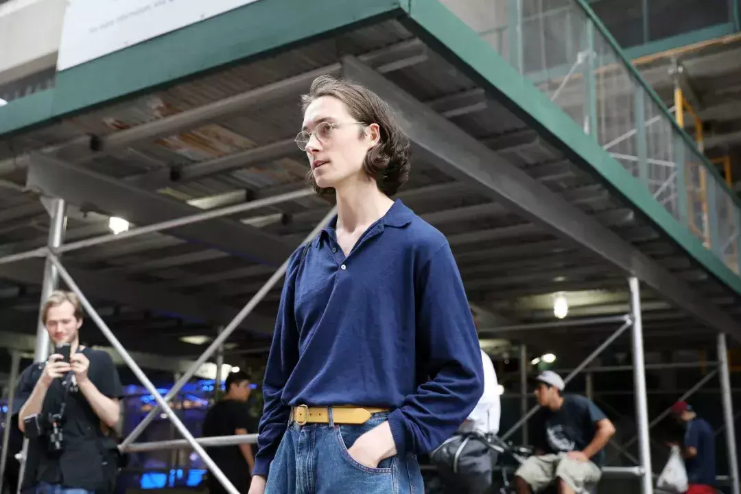 Solid color basic models frequently appear in street photography. They look simple, but in fact they give fashionable people more choices in matching. Big space. The large color blocks are very tolerant. If you are trying a long-sleeved T-shirt for the first time, it is highly recommended to get a dark color. For men who are lazy to match, you can basically not go wrong with it.