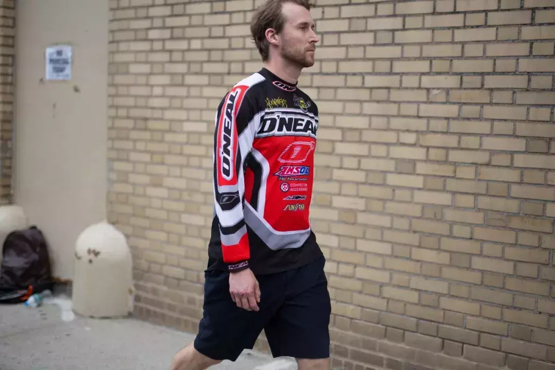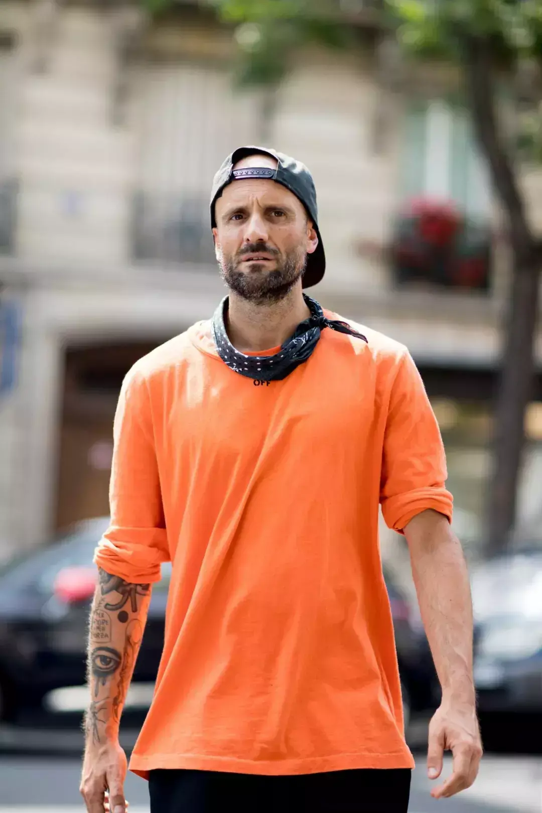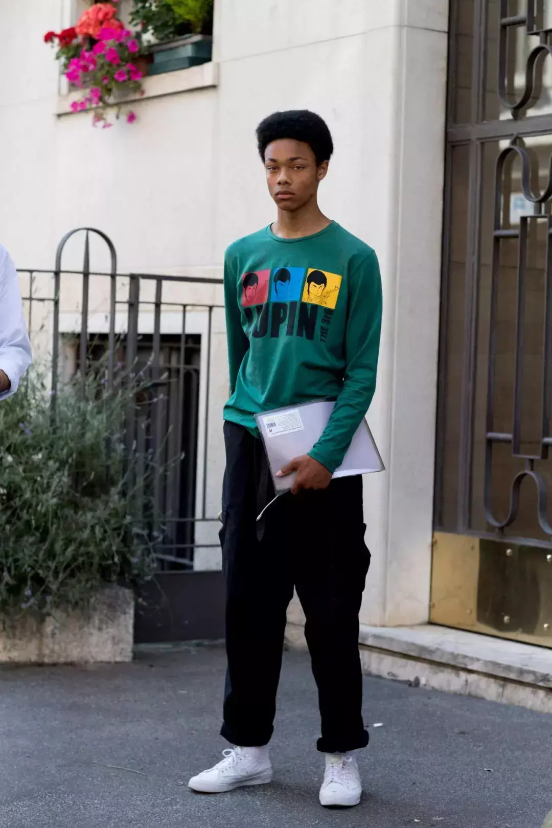 Solid color basic models frequently appear in street photography. They look simple, but in fact they give fashionable people more choices in matching. Big space. The large color blocks are very tolerant. If you are trying a long-sleeved T-shirt for the first time, it is highly recommended to get a dark color. For men who are lazy to match, you can basically not go wrong with it.