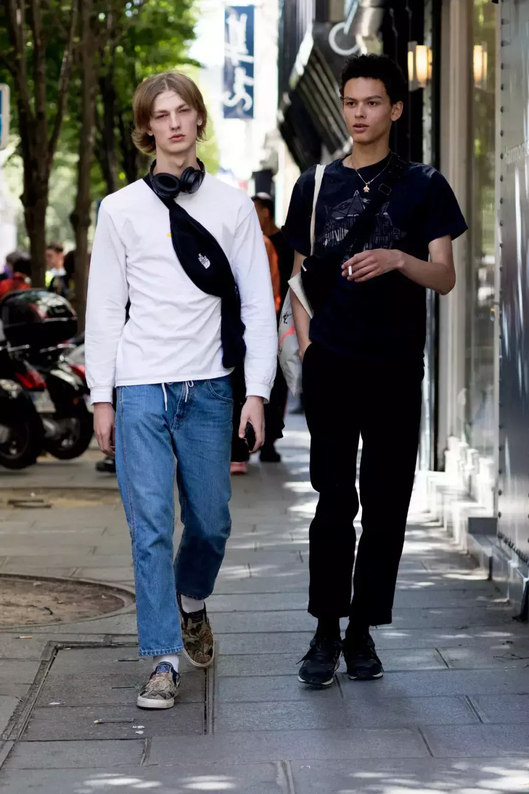 Pay attention to the details to find highlights! Every fashionable man has learned to fold his trousers in order to make his jeans fit better and not drag out. On the other hand, it also adds a sense of fashion. Paired with this year’s must-have trendy waist bag, the overall look is more distinguished.
