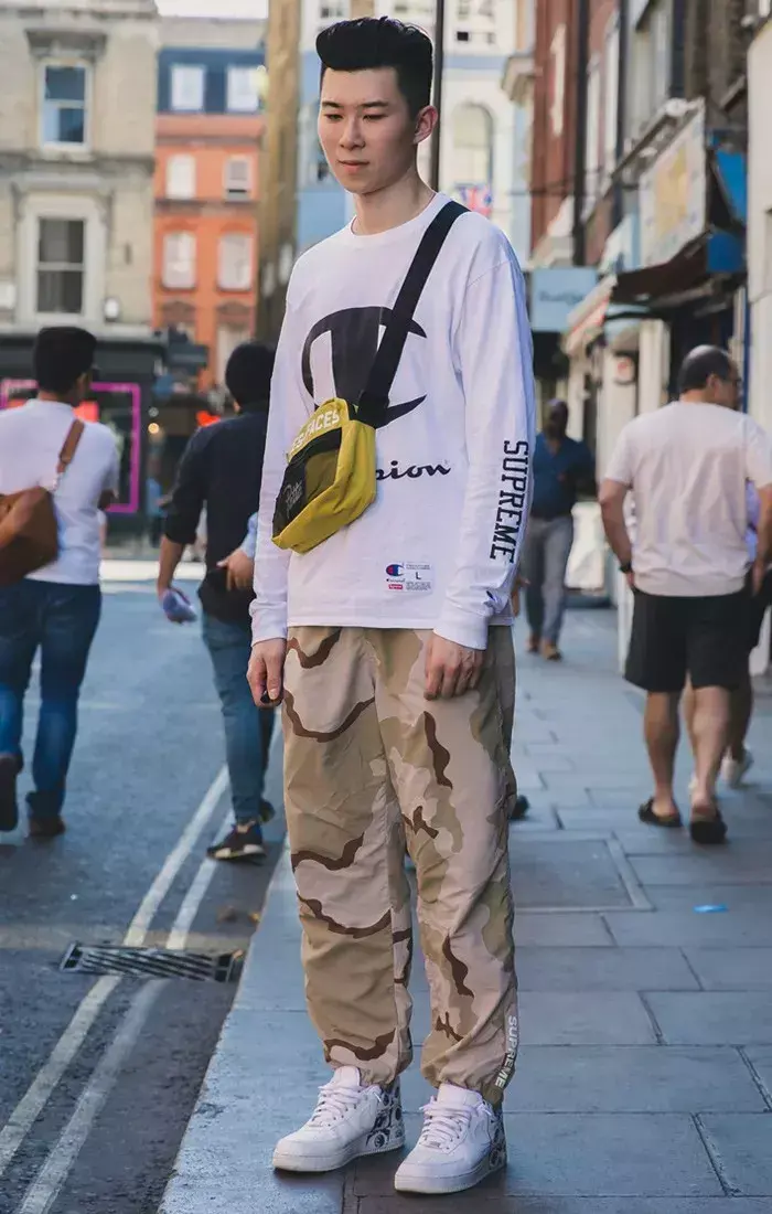This guy’s matching is also a great test of personal aesthetics. The sporty atmosphere of these two items is too strong, and it is easy to wear them as “club” popular styles. Therefore, adding a fisherman hat and the most popular translucent sneakers to the complementary items has greatly improved the overall fashion sense.