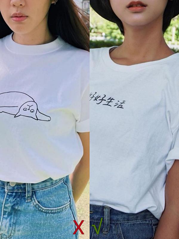 The difference between the left picture and the right picture is that one is above the collarbone and close to the face, while the other is below the collarbone and away from the face. The difference between who wins and who loses is clear at a glance. Therefore, it is recommended to choose a T-shirt style with a slightly larger neckline like the picture on the right.
