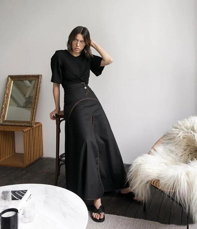 The light color is refreshing and elegant, with an age-reducing atmosphere, and its usage rate remains high in summer. But it is the light color that gives it a certain sense of visual expansion. When two T-shirts are of the same silhouette, it is recommended that a 40-year-old woman with a slightly chubby figure and fat on her waist and abdomen choose a darker color. Because the dark color is mysterious and deep, it can visually shrink the sense of déjà vu, making the whole person look more delicate and slimmer.