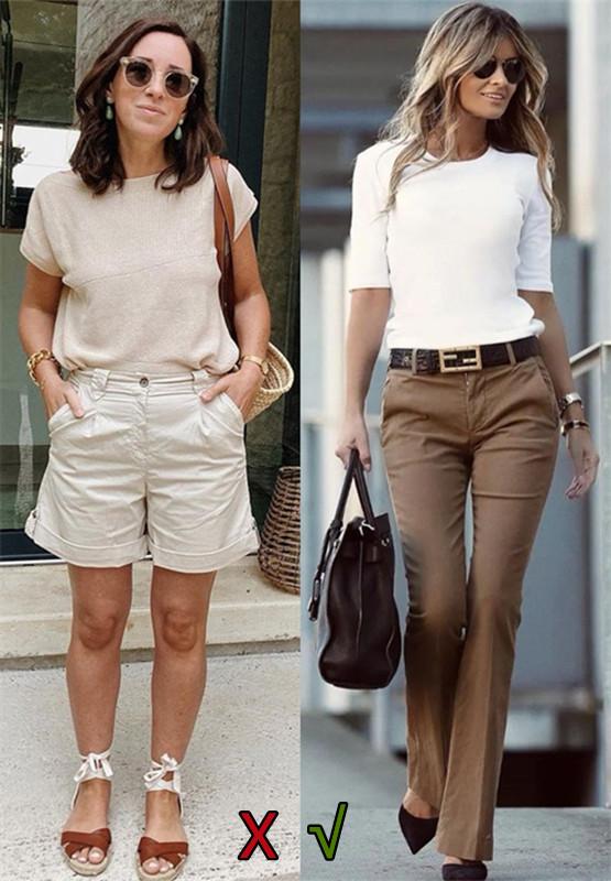 However, for women with thick and short necks and fat faces, they directly step into the “dressing minefield”, unable to show any beauty, and will also The shortcomings are fully exposed. It is recommended that women with this kind of problem choose oval collars, V-necks and other necklines that expose a lot of skin and are modified, just like the large round neck T-shirt in the picture on the right, which can quietly modify and improve the shortcomings of the neck and face shape.