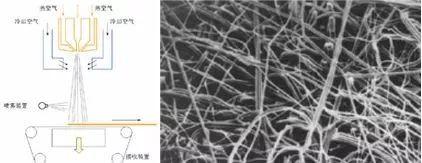 Melt-blownThe process of non-woven fabrics: polymer feeding—melt extrusion—fiber formation—fiber cooling—web formation—reinforcement into cloth.