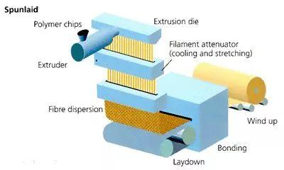 After the polymer has been extruded and stretched to form continuous filaments, the filaments are laid into a web, and the web is then bonded to itself. Bonding, thermal bonding, chemical bonding or mechanical reinforcement methods turn the fiber web into a non-woven fabric.