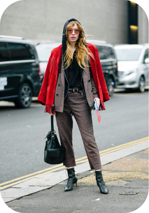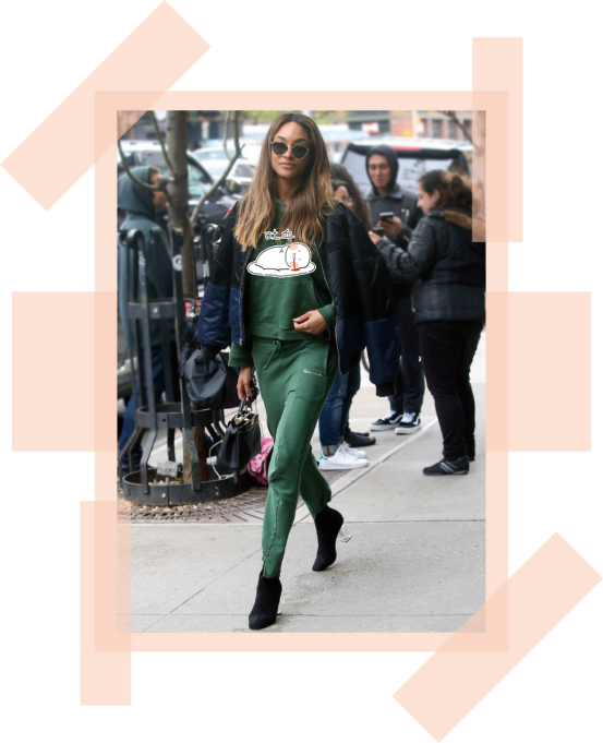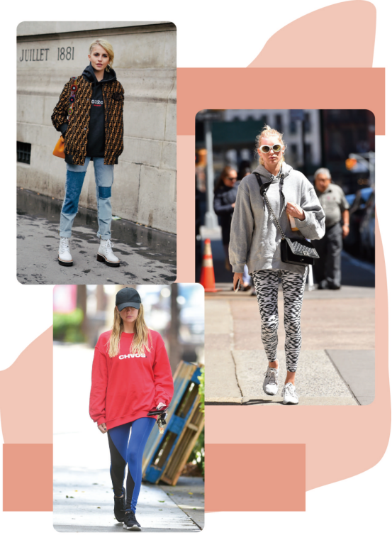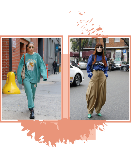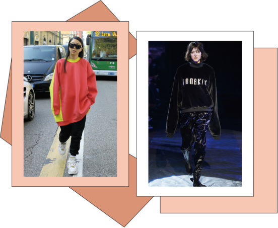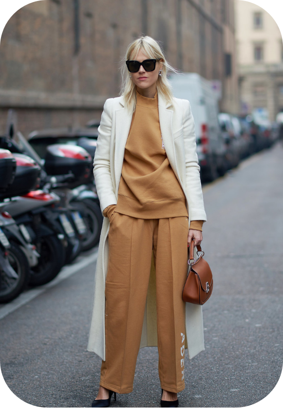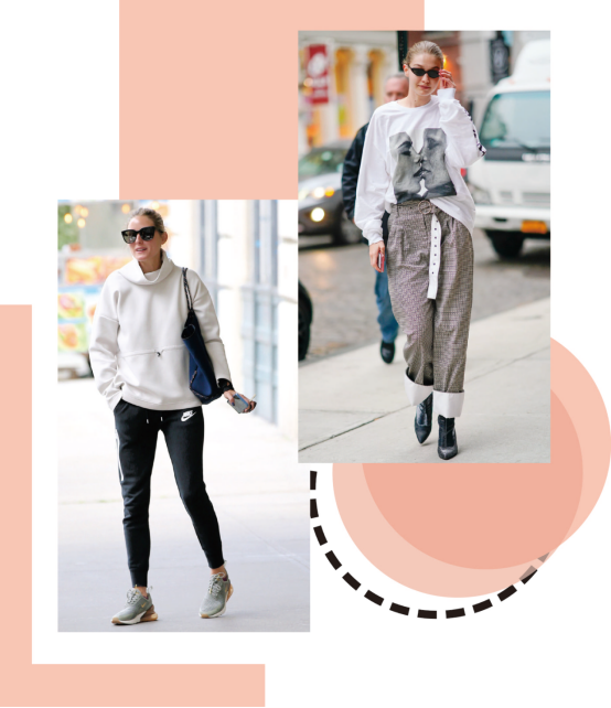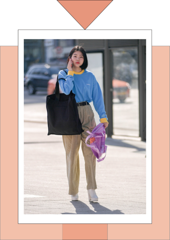 The combination of “sweatshirt + trousers” can be divided into two types according to fabrics: sweatshirt + sports fabric and sweater + delicate fabric. First of all, the combination of sweatshirt + sports fabric trousers is the first choice for leisure and comfort