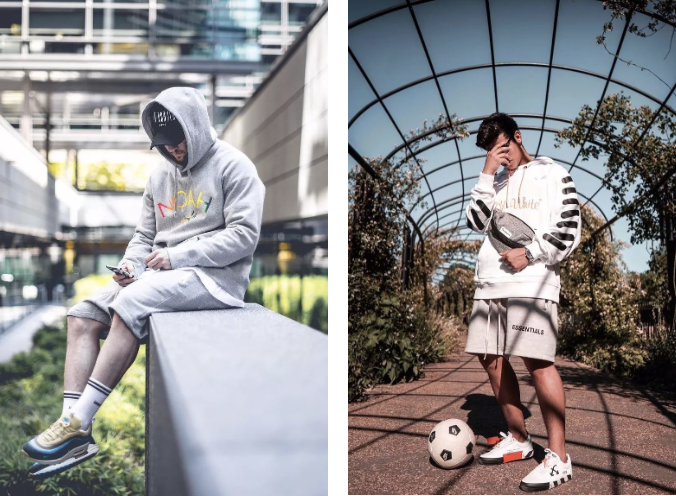 You can also find conflicting contrasts from the style, such as sweatshirts and shorts, length comparison, Break the traditional long top and long bottom, or short top and long bottom, and replace it with long top and short bottom, which will make it more fashionable and more eye-catching and recognizable among the crowd.