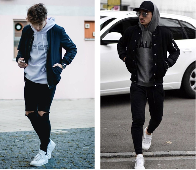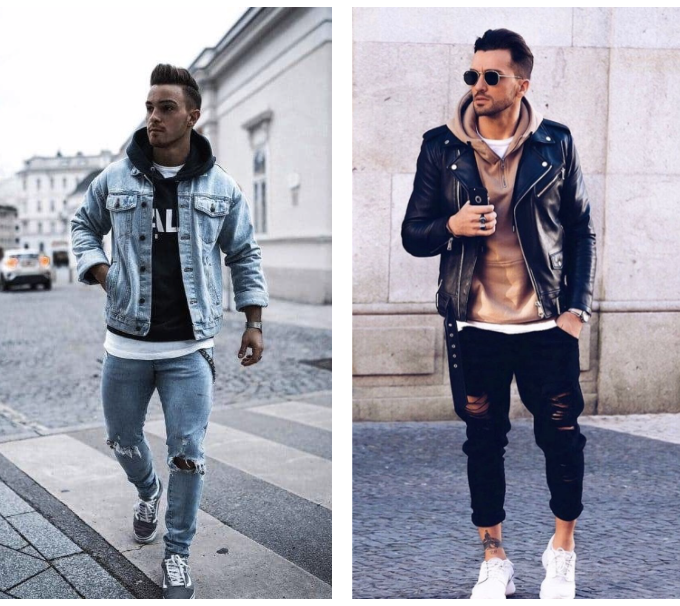 Pair a sweatshirt jacket with jeans to easily create a hip-hop trendy male style, because most jackets They are all slim-fitting, so the inner sweatshirt must fit well and not be loose. Pair it with simple jeans and a baseball cap of the same color to look very American.