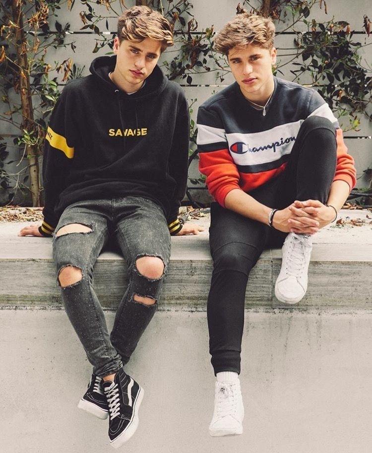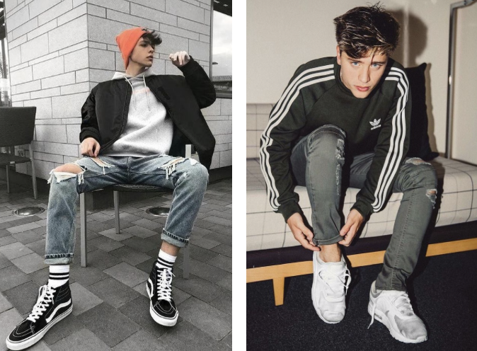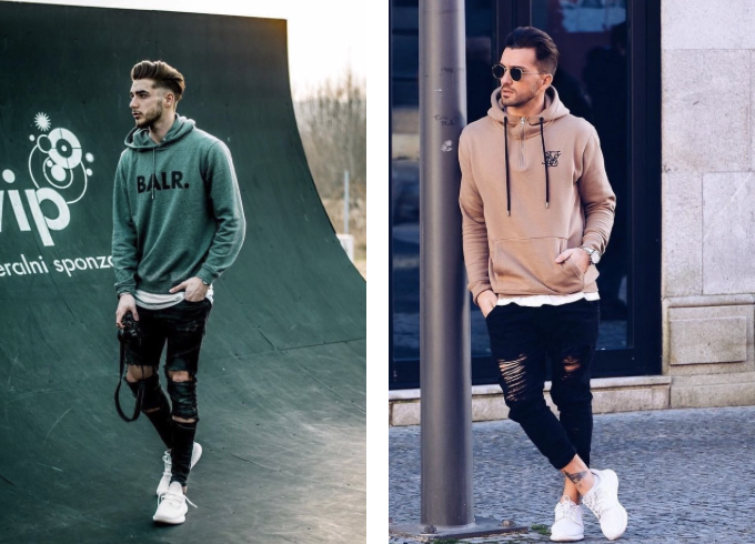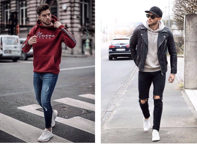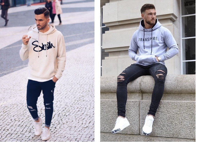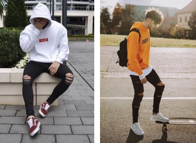 Sweatshirts and ripped jeans can better show off your personality. Ripped pants add “breathability” to the lower body of the legs and can well modify the proportions of the legs. However, boys with imperfect legs are recommended to choose loose-fitting pants. , can cover the shortcomings of the legs.