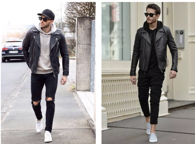 The softness and comfort of the sweatshirt and the toughness and handsomeness of the leather jacket can form a strong visual In contrast, the neat leather jacket has a bit of street style, and short leather jackets are especially recommended to make your outfit more layered.