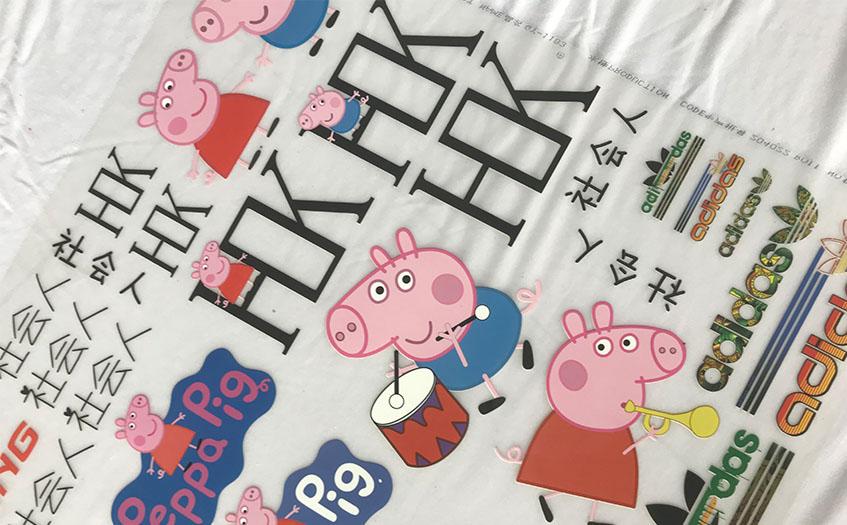 Korean heat transfer is a combination of cartoons, characters, English letters, etc. The pattern is printed on the printing film using an eco-solvent ink printer, and then heated to about 130° by a thermal transfer press, so that the glue on the printing film sticks to the heated surface.