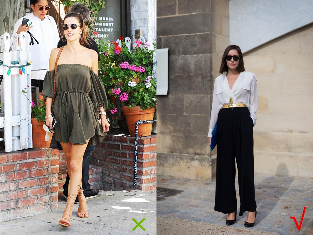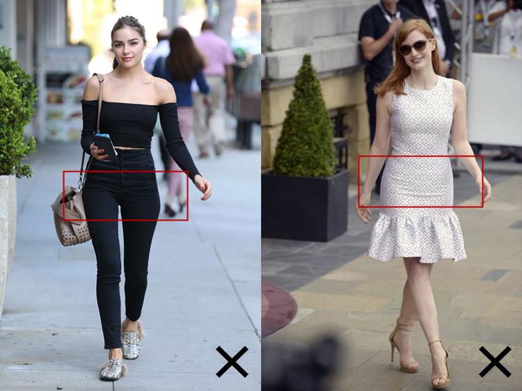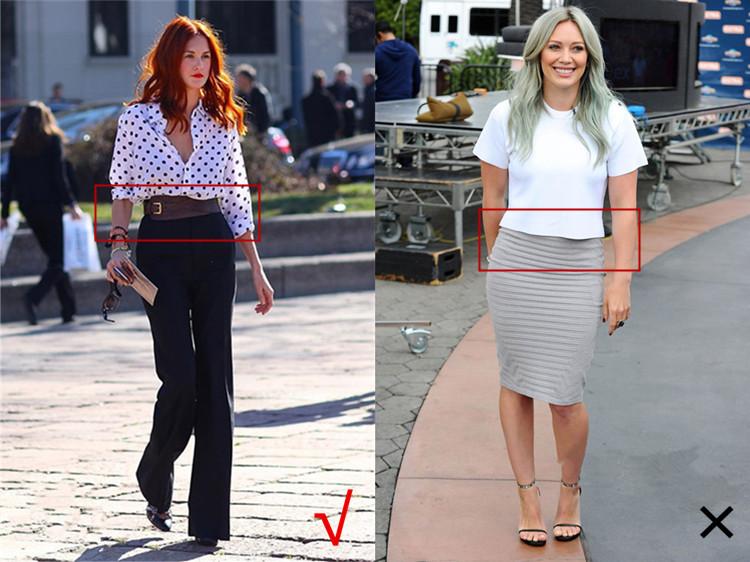 As can be seen from the comparison above, the model on the left is well exposed through the combination of short top and long bottom. The waistline can focus attention on the waist, and the lower body does not look bloated. But the model on the right has a blurred waistline and no clear lines, so she looks very fat.
