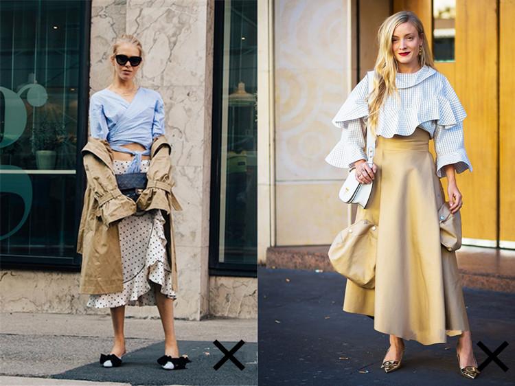On the left is a skirt mixed with various elements. It does seem to weaken the line of the crotch, but Overall, the skirt will look bloated due to too many elements. As for the simple high-waist skirt on the right, the high-waist design highlights the waistline and weakens the crotch line, and the simple design is actually more advanced.