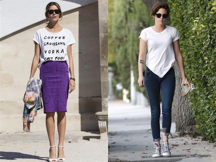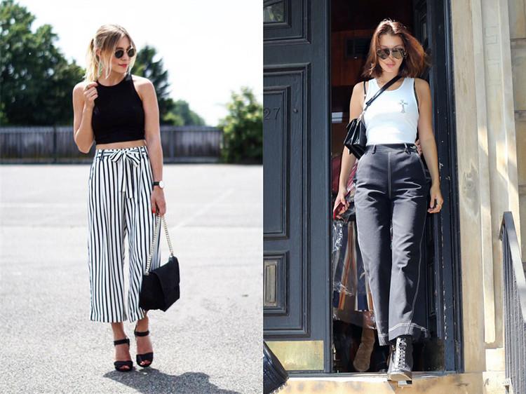 The girl on the left uses the same color combination for her upper and lower body. At this time, for girls with a pear-shaped figure, It will expose your wide hips. The white top on the right is paired with black pants. The combination of dark and light colors can not only create a more coordinated body proportion, but also show a more advanced dressing style!
