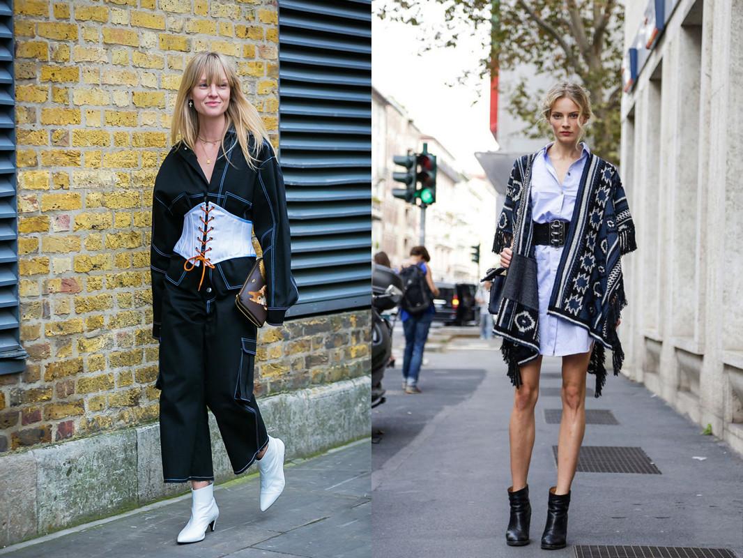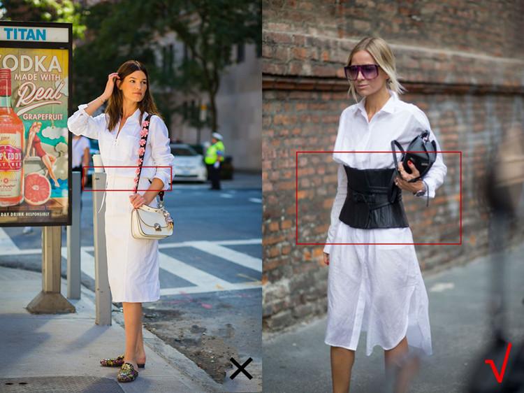 If you want to make a fuss about your waist to highlight your waistline, You can use the girdle, which is very popular right now, to create it. It is also a shirt. The model on the left is wearing a loose shirt. It is fashionable, but it is not suitable for pear girls. The model on the right has a girdle embellished around her waist, which not only modifies the waistline but also embellishes the overall look, making her look very famous.