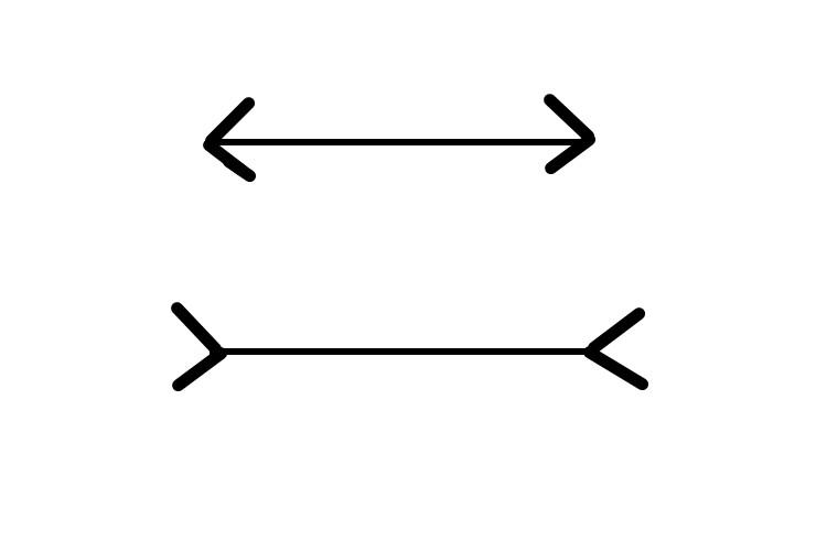 We can use the principle of visual illusion to stretch horizontally To explain, two straight lines of the same length feel like they are different lengths when they stretch outward and shrink inward.