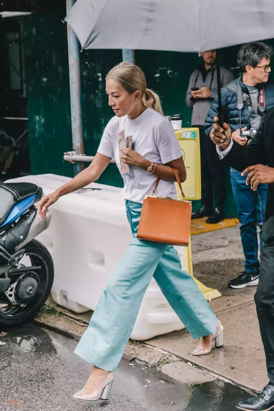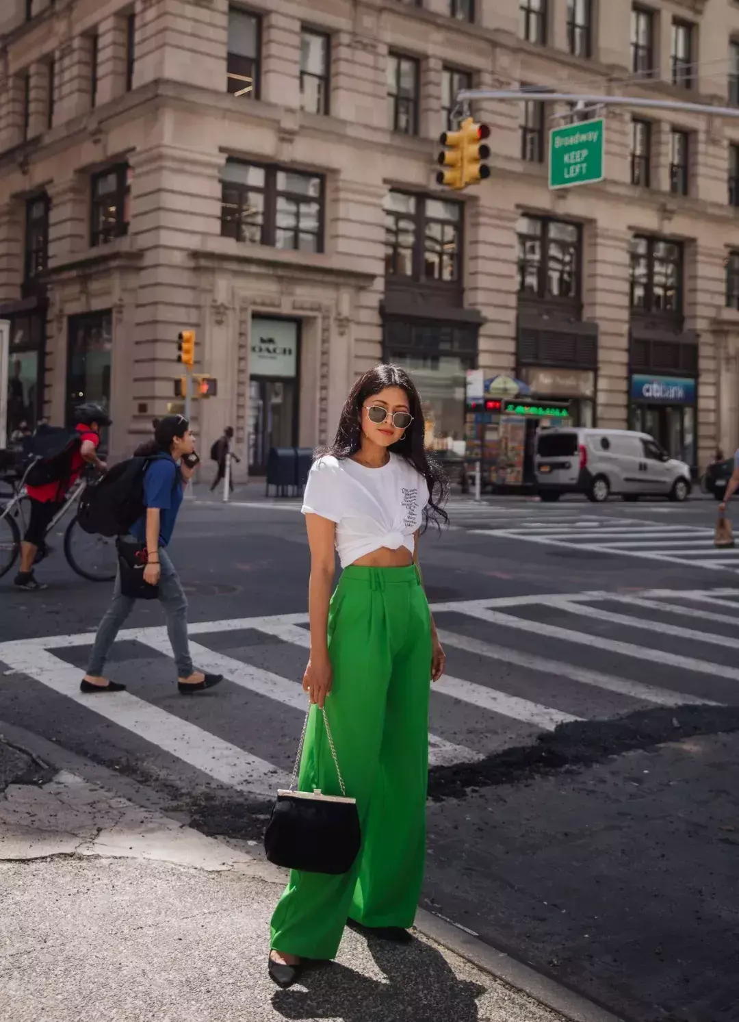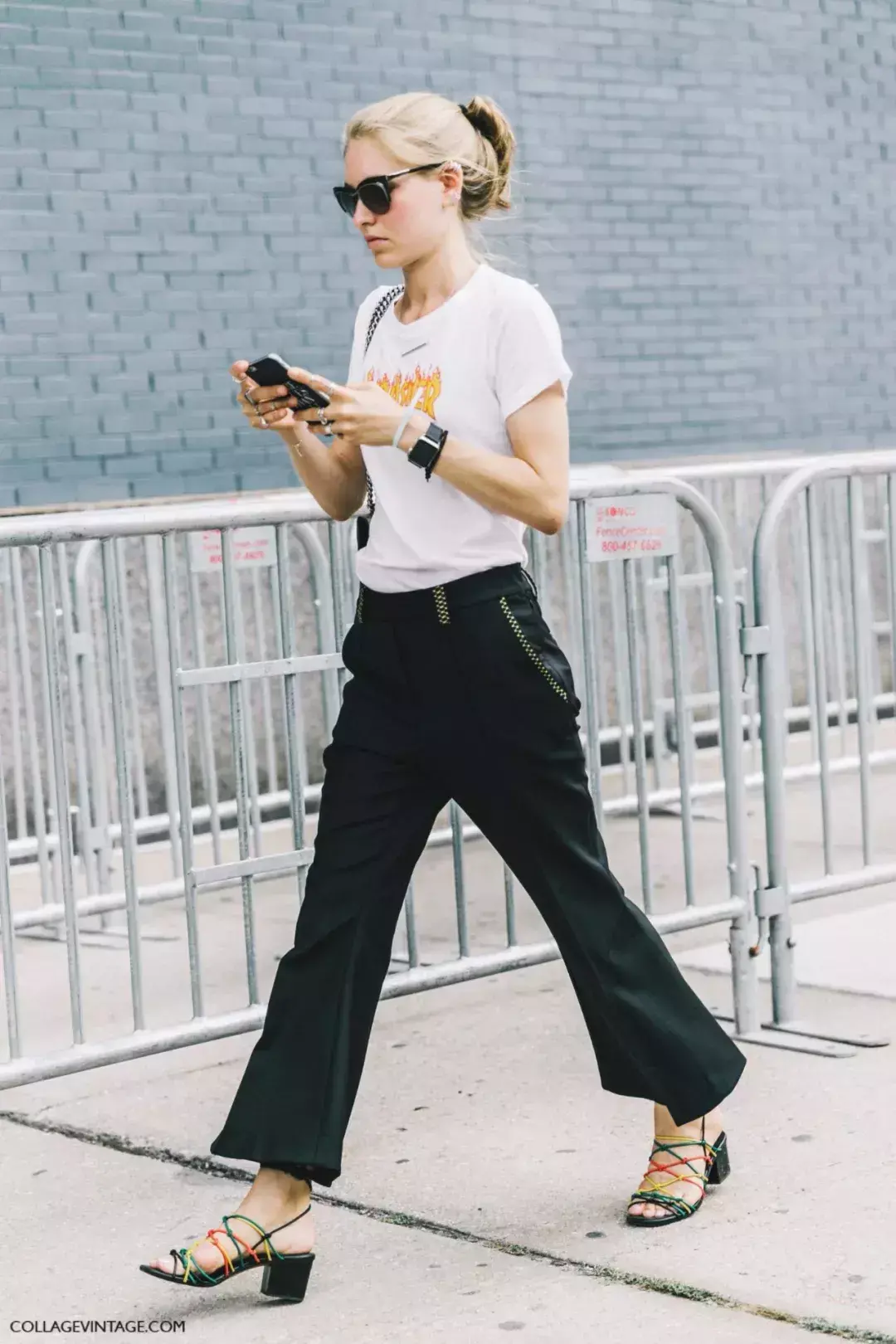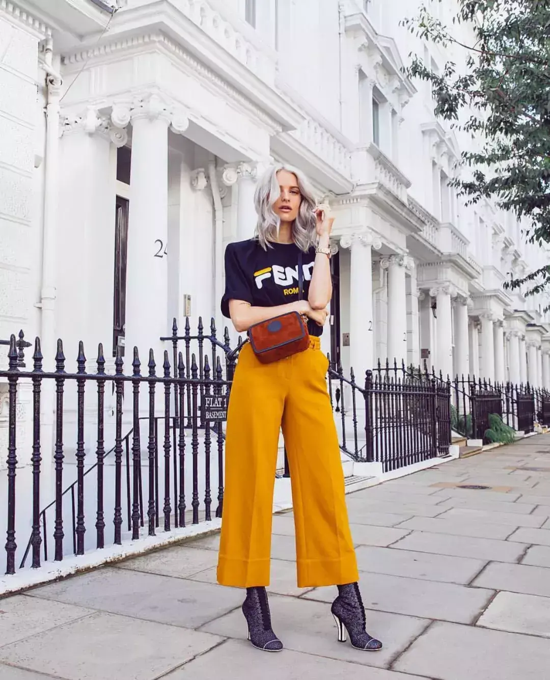 If your T-shirts are mostly in basic colors. You might as well try pairing them with a pair of bright wide-leg pants in a brighter color to stand out from the crowd.