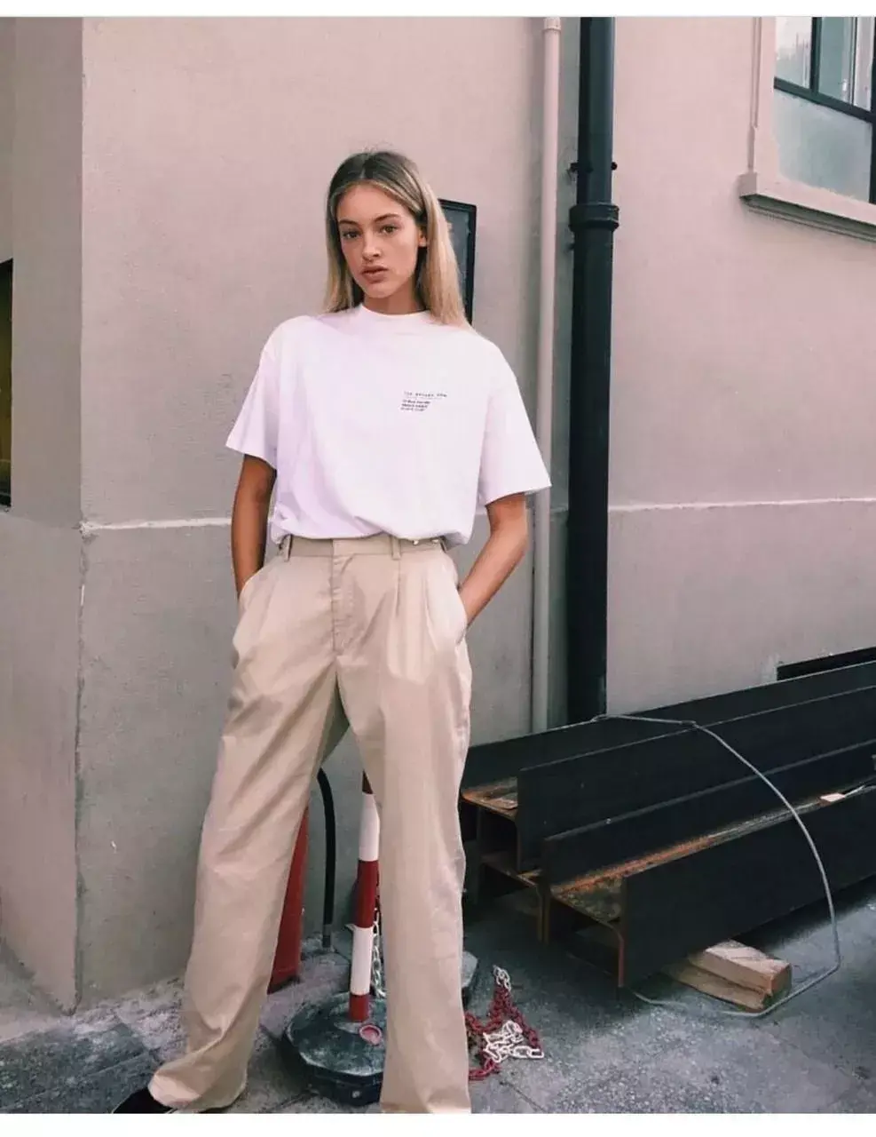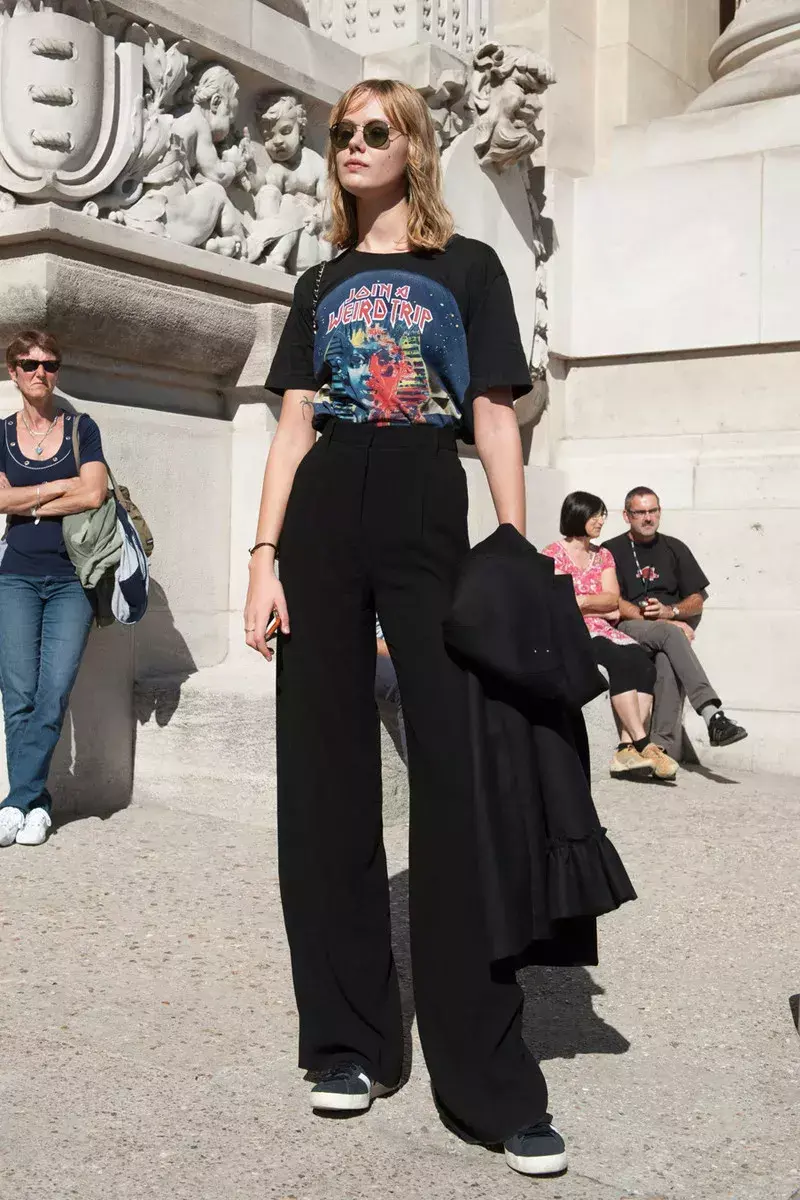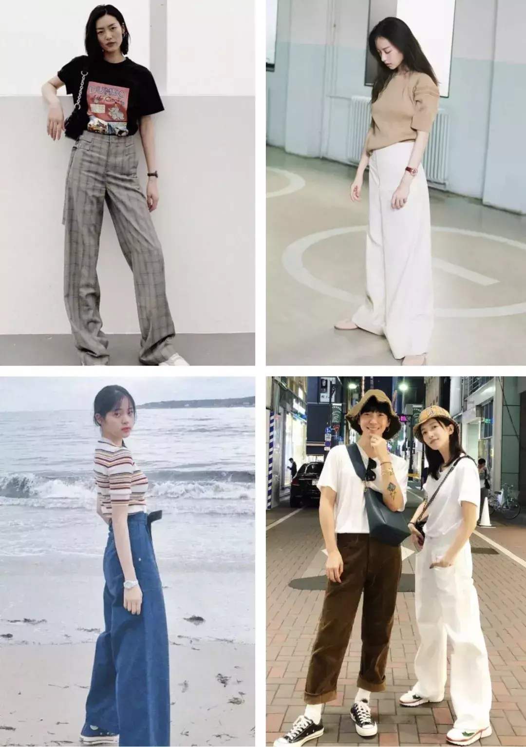 Pants suitable for wearing with a T-shirt (you wear a T-shirt + wide-leg pants = you are really fashionable)